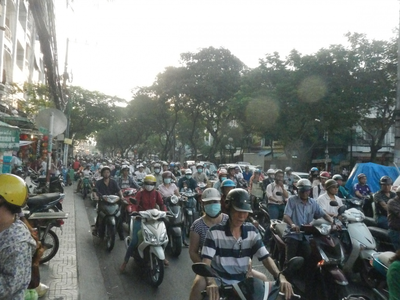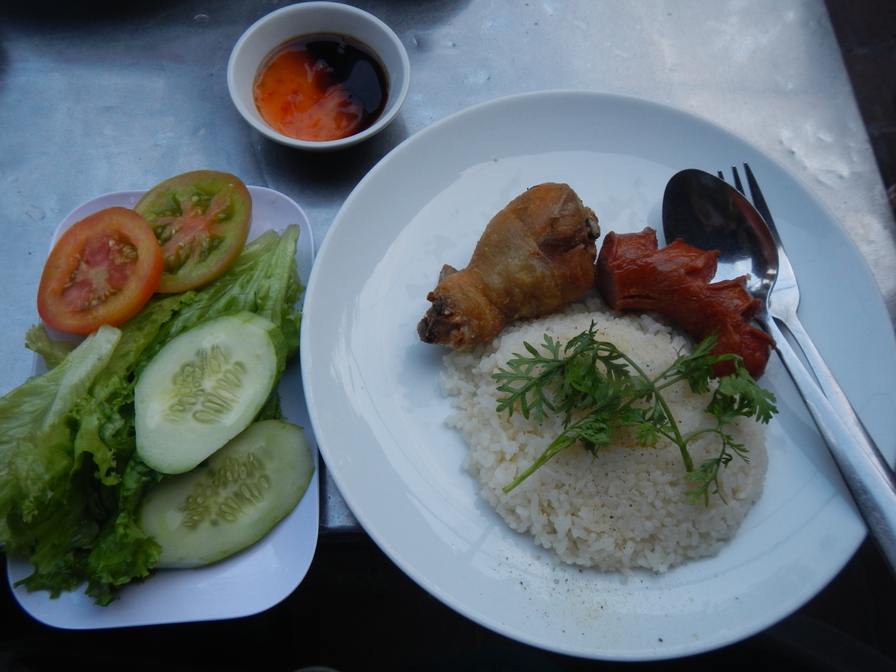 ベンタンバスターミナルから路線バスの乗ってチョロンに行ってみた。チョロンのバスターミナルまで30分ほどで着いた。バスを降りるとバスターミナル前の路上のマーケットを見て、プラカゴ屋に行く。街を歩いてビンタイ市場に寄り、チキンライスを食べて戻った。