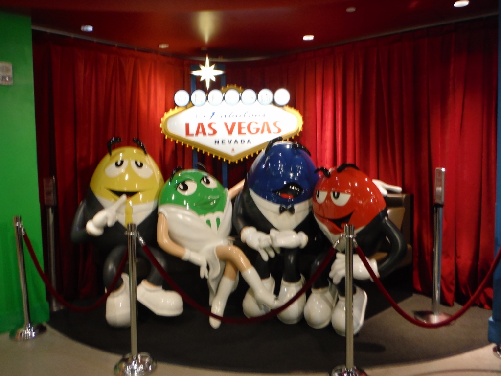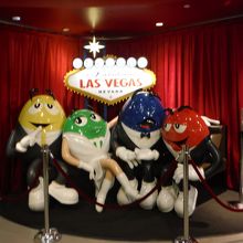カラフルなチョコレートのM&M。そのカラフルなチョコレートと同じぐらいに原色なキャラクターのグッズを沢山売っています。二つで○○ドルとお安くなる設定が多かったので沢山買う人にはお得です。大きなマグカップやバスタオルなど色々ありました。量り売りのカラフルなチョコレートは圧巻です。
