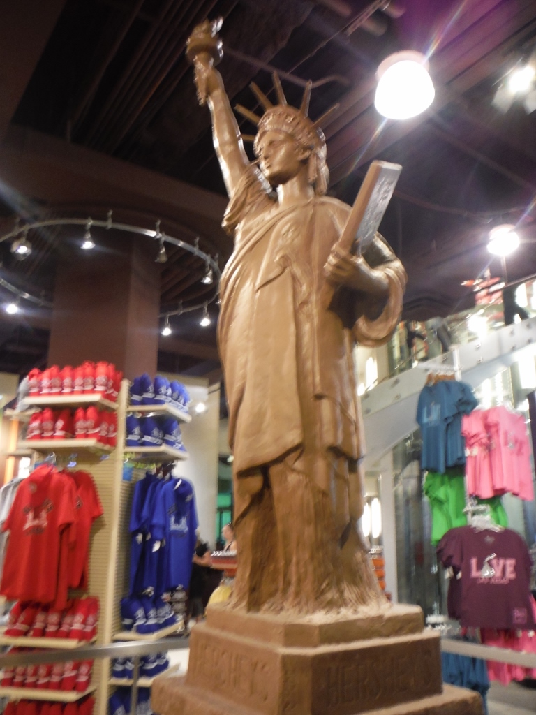 ニューヨークニューヨークのホテルにあるハーシーズのチョコレートのお店です。店の外の人形のオブジェは人気の写真スポットです。店内はあまり広くはありません。M&Mにあるような量り売りのチョコやクッキーなどもありました。お菓子で作った自由の女神像も見る事ができます。