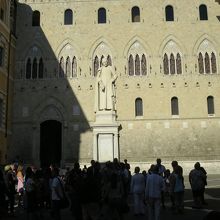 シエナのバンキ・ディ・ソプラ通りの中ほどにあるサリンベーニ広場の正面の建物がサリンベーニ館です。14世紀に建てられたゴシック建築の建物はシエナの有力者、サリンベーニ家の城館でした。今なお現役でイタリアの老舗銀行モンテ・デイ・パスキ銀行本店として使われています。