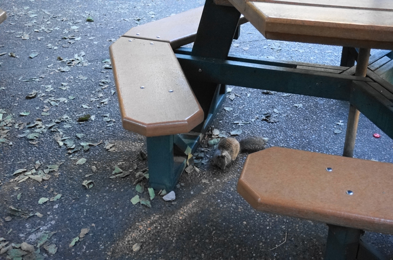 ストアの後方(外側)には 休憩で使えるベンチやテーブルがあり