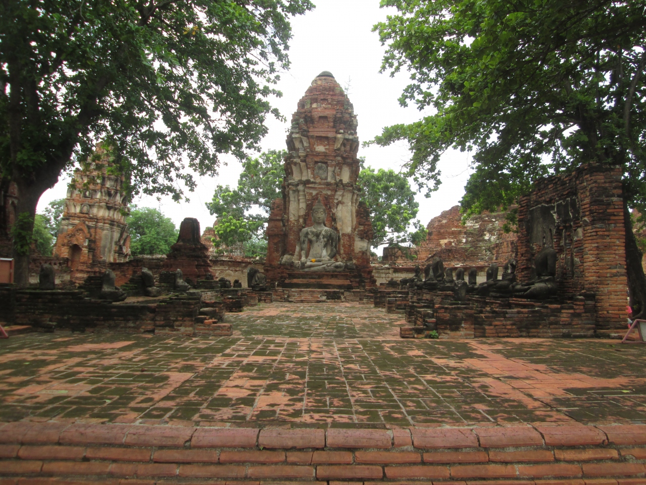 アユタヤーのワット プラ マハタートはビルマ軍によって破壊された頭部や上半身がない仏像がある印象を受けます。一方、戦争の被害を受けず五体満足で残っている仏像もあります。広い敷地内ですが、見つけることができました。