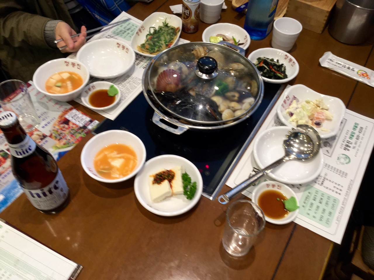 冬なのでヘムルタン(海鮮鍋)を。3人までだと小で十分とのこと。ヘムルタン小 40,000ウオンに〆のポックンパ(メニューにはピラフと書かれています) 2,000ウオン、あとビールと烏龍茶で、〆て48,000ウオン。結構これだけで2人だと食べ応えありました。