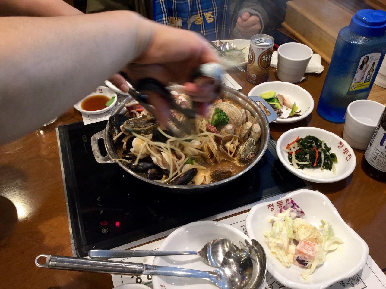 - 釜山でNo.1とのことでアワビまで入っていました。〆のポックンパが最高に旨い!