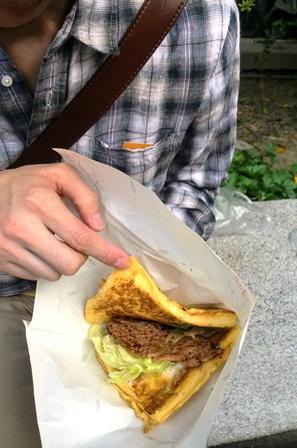 今回は法式豬排(ファースージューパイ)70元を購入しました。甘くないフレンチトーストの間に豚肉レタスがサンドしてあり、とてもおいしいです。結果今回の旅行中に2度行ってしまいました。