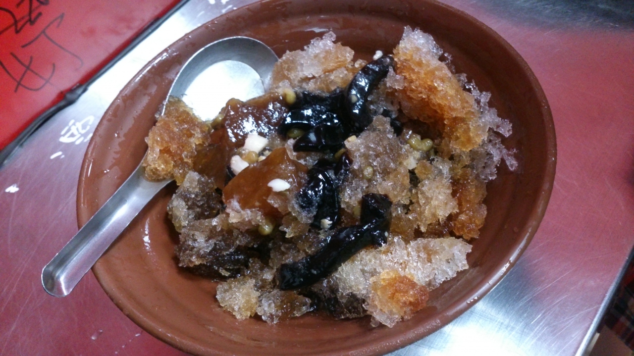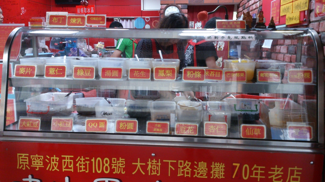 夏は地元のお客さんで溢れています。基本は、カキ氷一碗50元(トッピング4種類)。さらに1種類のつき+10元でオプション追加も可。