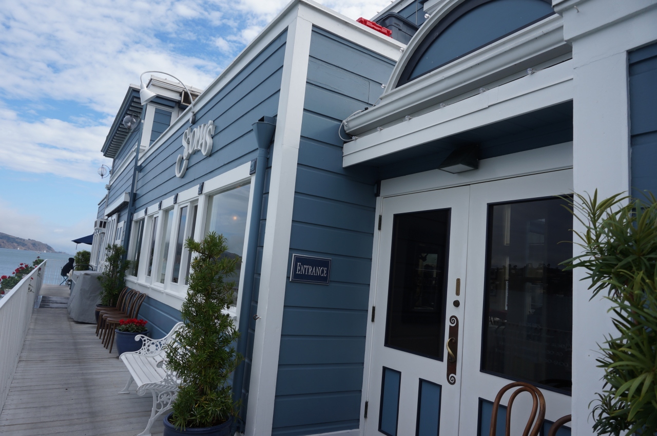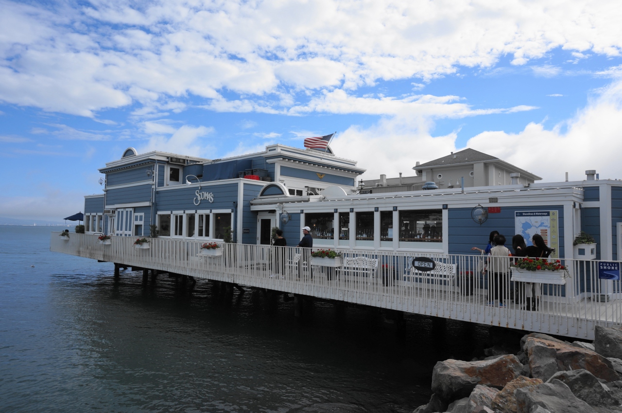 サウサリートの海沿いの桟橋に建つお洒落なレストランです。