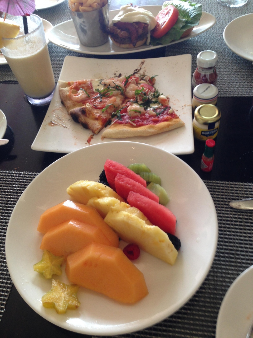 ホテルからビーチを望む景観のすばらしさにひかれて、おそいランチをとることに。