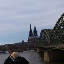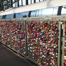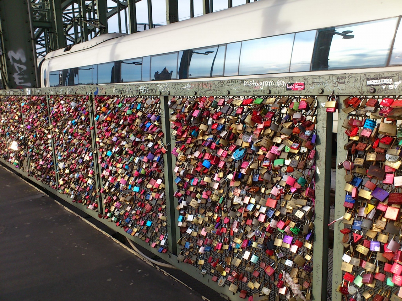 ライン川に架かる鉄道橋です。デュッセルドルフから電車でケルンへ移動したので、この橋を電車で渡ってケルンに入りました。ケルン大聖堂は直近で見るのも良いですが、対岸に渡って見る全景も素晴らしいとあったので、この橋を渡ってみました。鉄道の線路脇に歩道があります。鉄道側の金網には、パリの有名な橋と同じように南京錠がたくさん掛けられています。