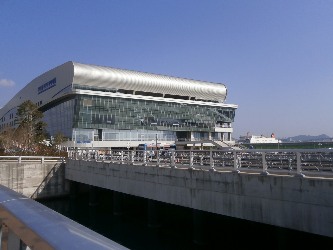 釜山の国際フェリ−タ−ミナルは中央洞から釜山駅裏に移動し、地下鉄駅まで歩く距離が若干長くなった。釜山駅の港側出口を出て徒歩7分弱程度。FTからバス便もある。