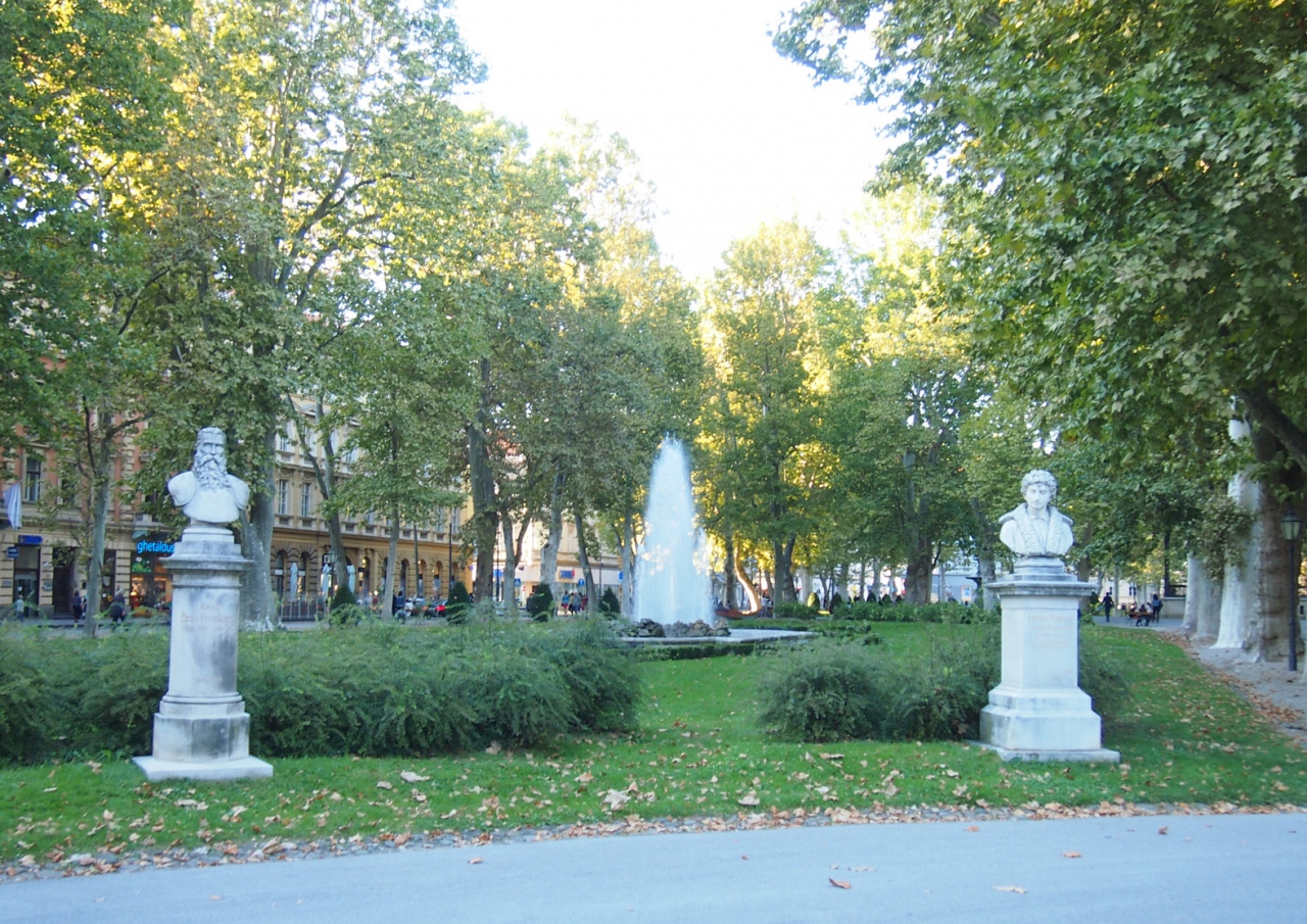 ザグレブ中央駅の目前、イエラッチ広場から続く広大な公園緑地の最北部に位置するのがズリニェヴァツ広場ですね。ザグレブの公園は良く整備されていて散策には最適ですね。