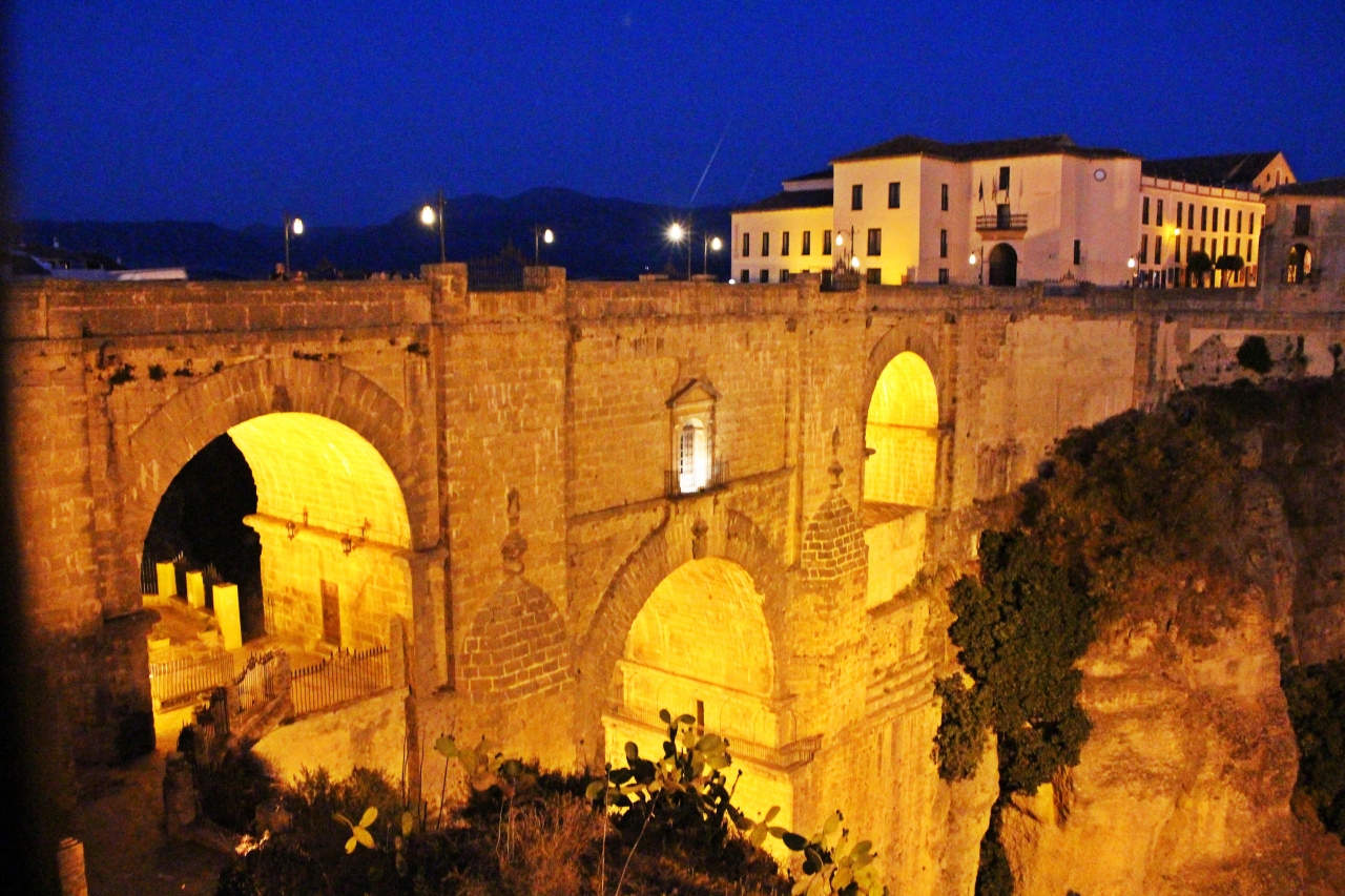ヌエボ橋の西側に立てば断崖絶壁の上の建つ旧市街地の白い家々の姿が、東側に立てば、ビエホ橋方向の切り立つ峡谷の姿を眺めることができ、崖上に立つ天空都市ロンダの雰囲気を実感できる。