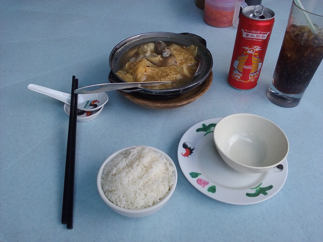 アロー通りとチャンカット・ブキッ・ビンタン通りの角にある、中華系のレストランです。私は排骨肉骨茶(名前うろ覚えです)とコーラを頼んで約700円程。肉のうまみが凝縮した深い味わいのスープを楽しむことができました。