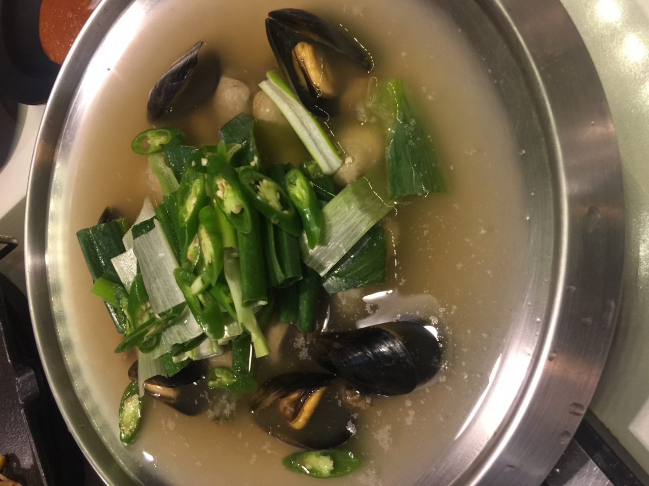 チゲも選択可能で、貝のスープにしました。少し辛めでおつまみ?にぴったりかも。
