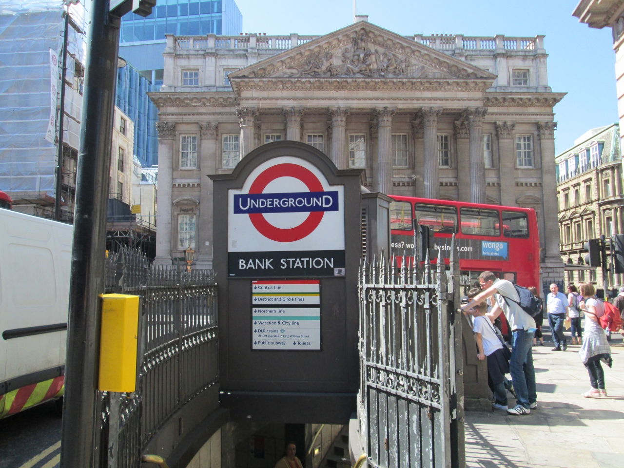 シティの中心バンク駅には4本のラインが交差しているので、乗り換えなどにも便利です。ロンドン滞在中に体調を壊し、病院に行く際に最寄りの駅がこちらでした。最初少し迷いましたが、周辺は金融街でビジネスマンがたくさん歩いてました。