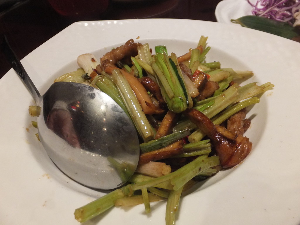 今日は挽肉・茄子料理、鶏料理、豚肉料理、台湾セロリ料理、牡蠣料理、海鮮卵料理を注文、牡蠣料理を除いてはどれも美味しかったです。全部で1400元、いつ来てもここは安くて美味しいです。