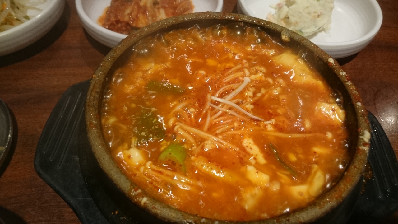 スンドゥブを食べましたが、美味しかったですが、卵がついてなかったのが残念でした。