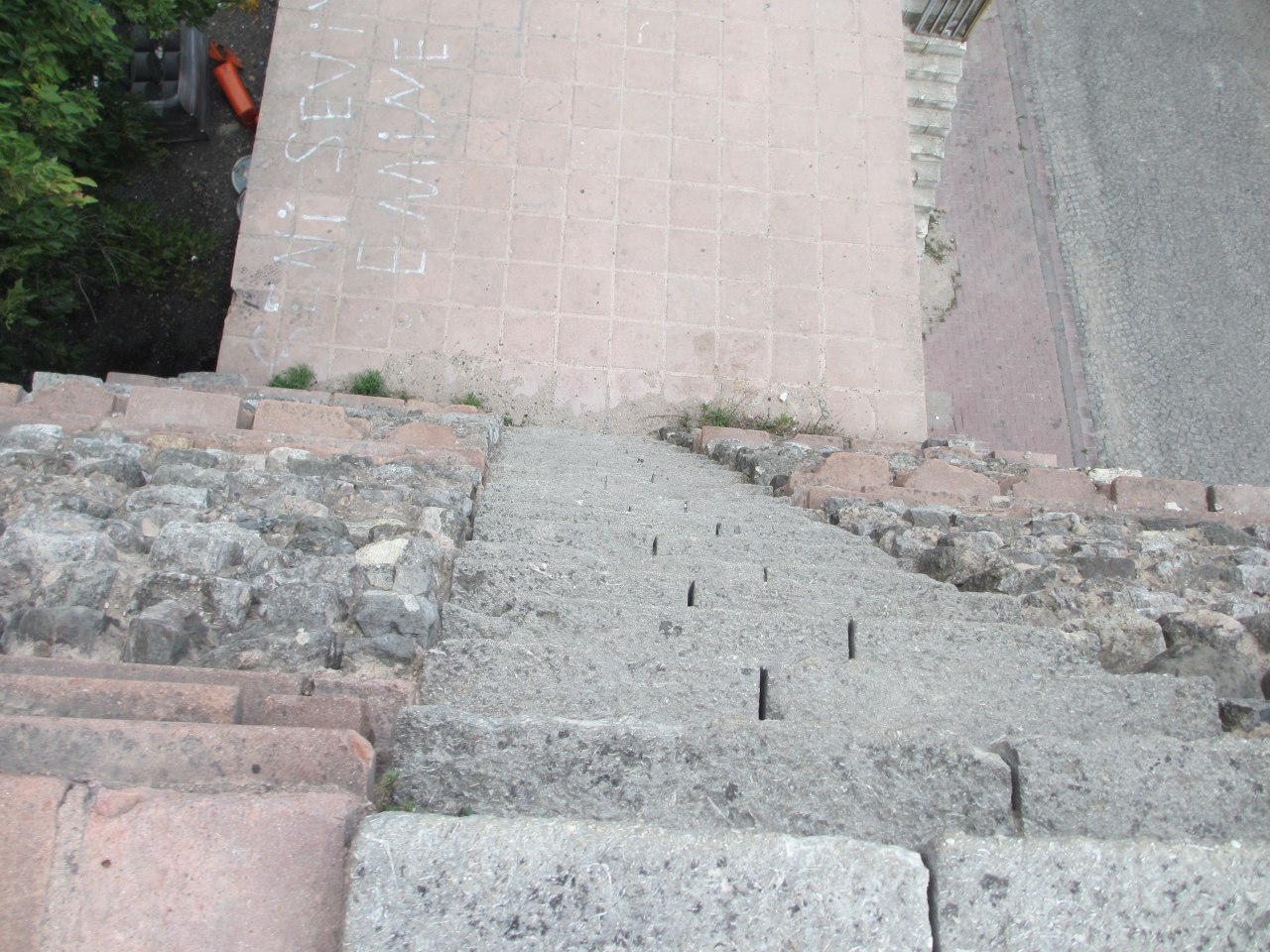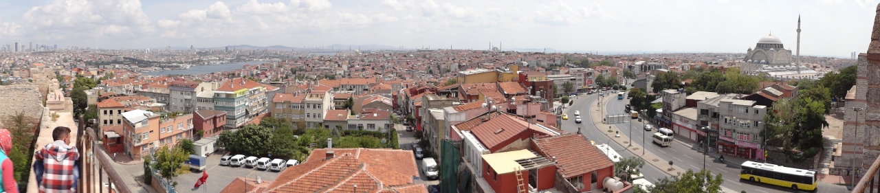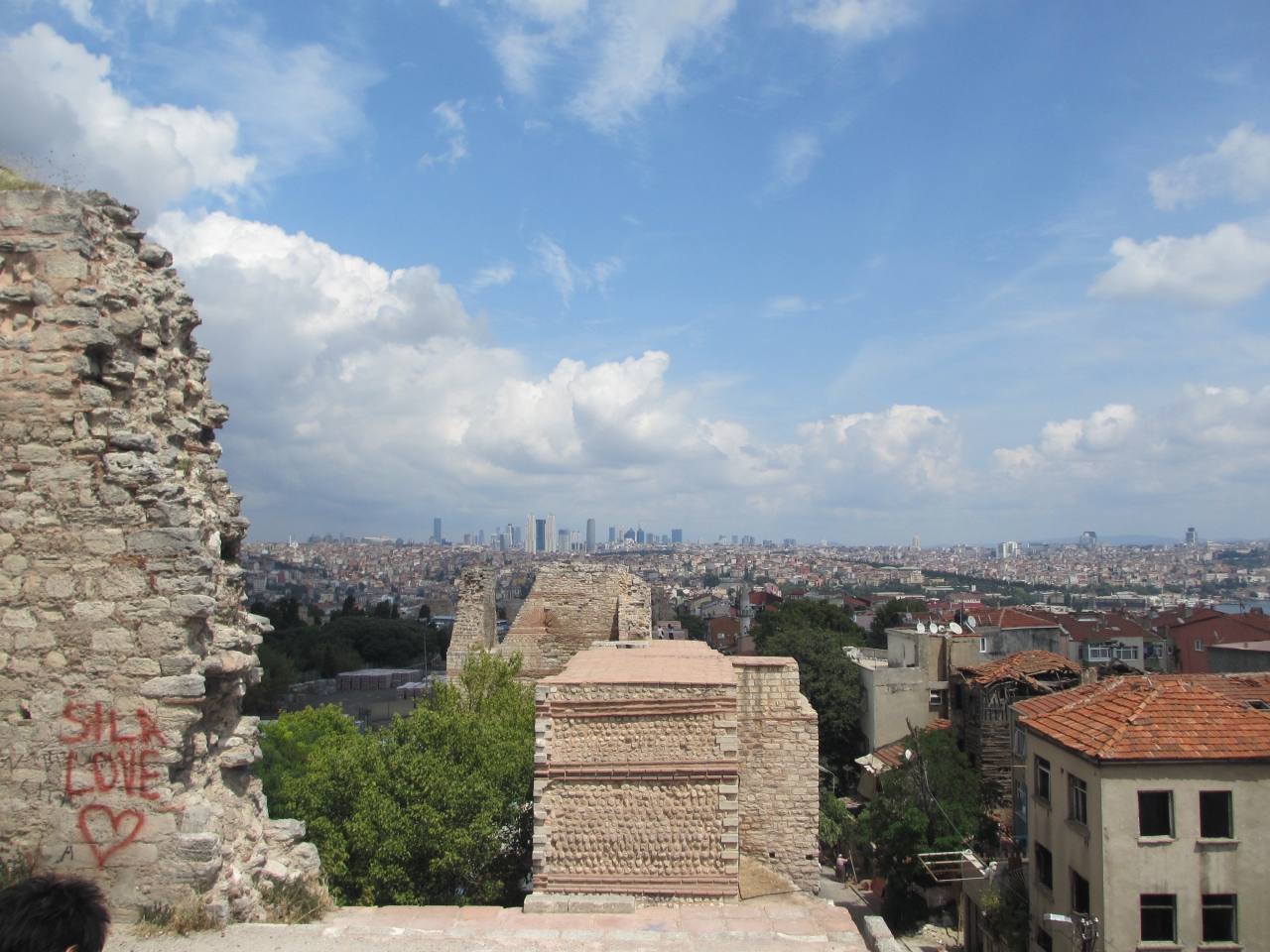 さらに、カーリエ博物館の最寄駅、エディルネカプ駅の近くで、今度は城壁にのぼりました。1段1段が大きく、しかも段がほぼ真上に作られている階段を恐る恐る登ると絶景が待っていました。
