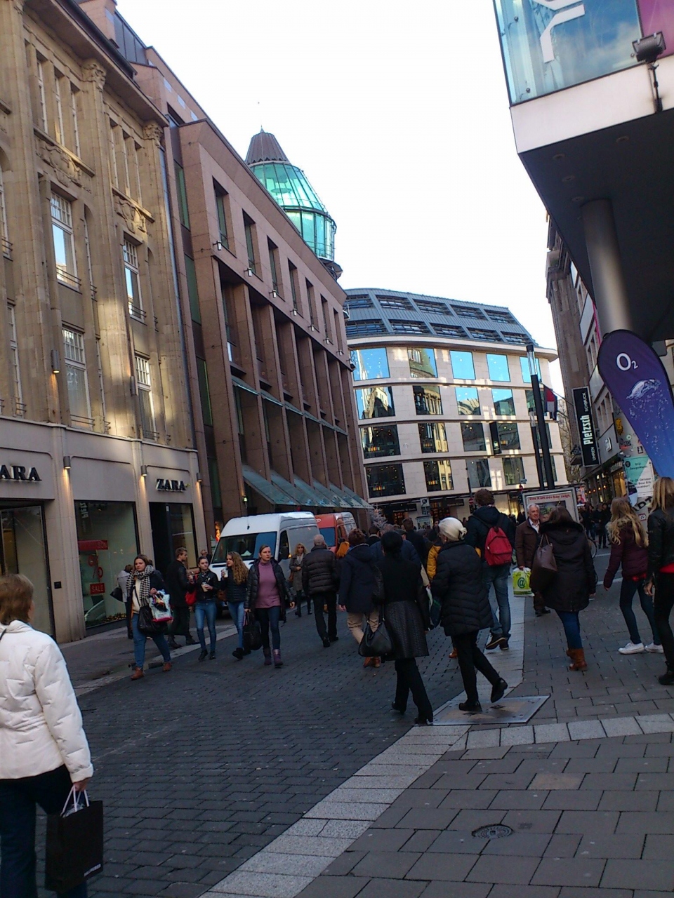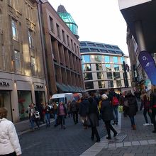 デュッセルドルフの市立劇場やホーフガルテン南側にある通りで、おしゃれなブティックや庶民的なデパートが並んでいます。地元の人々が買い物を楽しむ繁華街です。宿泊したホテル日航デュッセルドルフからライン河の近くにある旧市街へ向かう途中に偶然通りました。