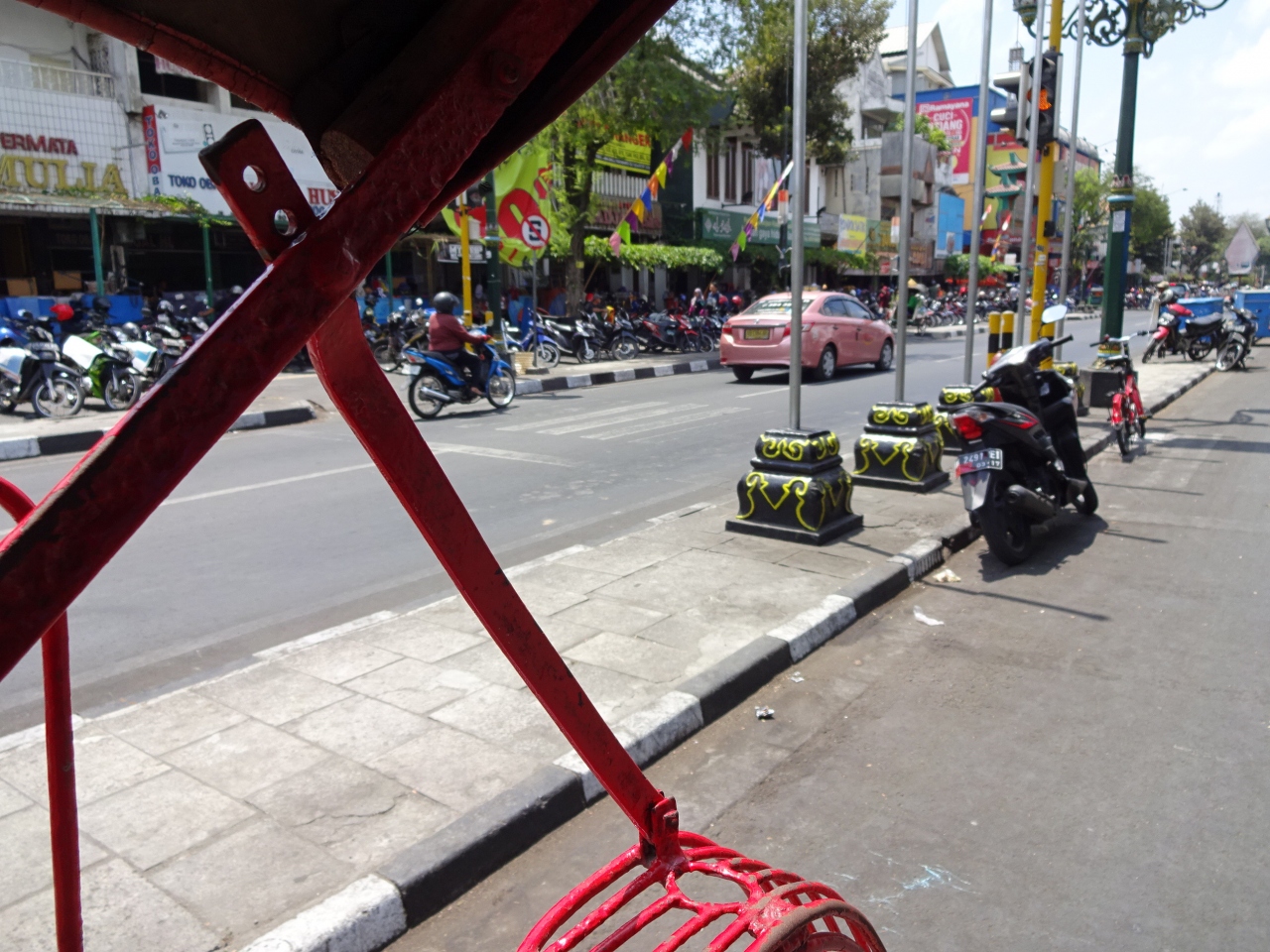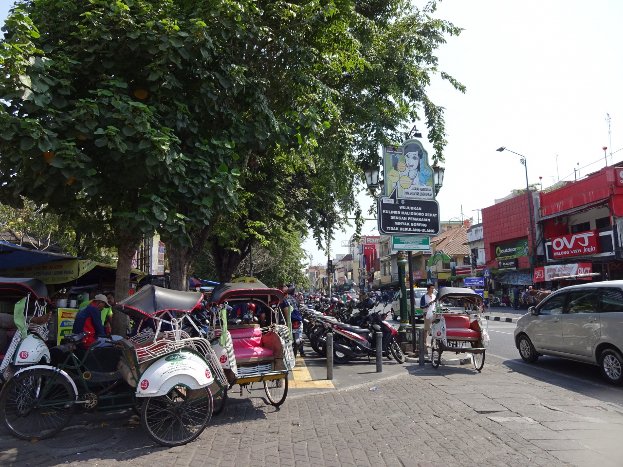 料金は事前交渉制。マリオボロ通りは一方通行なので、行ってほしい所まで行ってくれず途中で降ろされて揉めたりしましたが、それ以外は不満はありません。運転手が直射日光を浴びながら一生懸命漕いでくれるので、ちょっと有難い気分になる乗り物です。