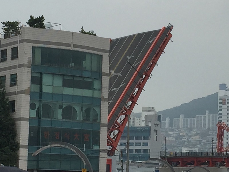 釜山の海にかかる橋ですけども長さとか見晴らしとかは全然特徴がない橋ですが、跳ね橋というただ一点で観光地となっている橋ですね。