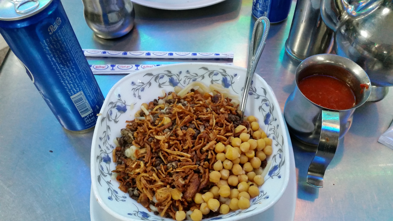 メニューはコシャリしかなく、トッピングを選べるようでした。とりあえず頼み方が分からないので全部のせで。10ポンド(160円)です。量が多くて、トマトソースも美味しくて日本人好みの味だと思いました。