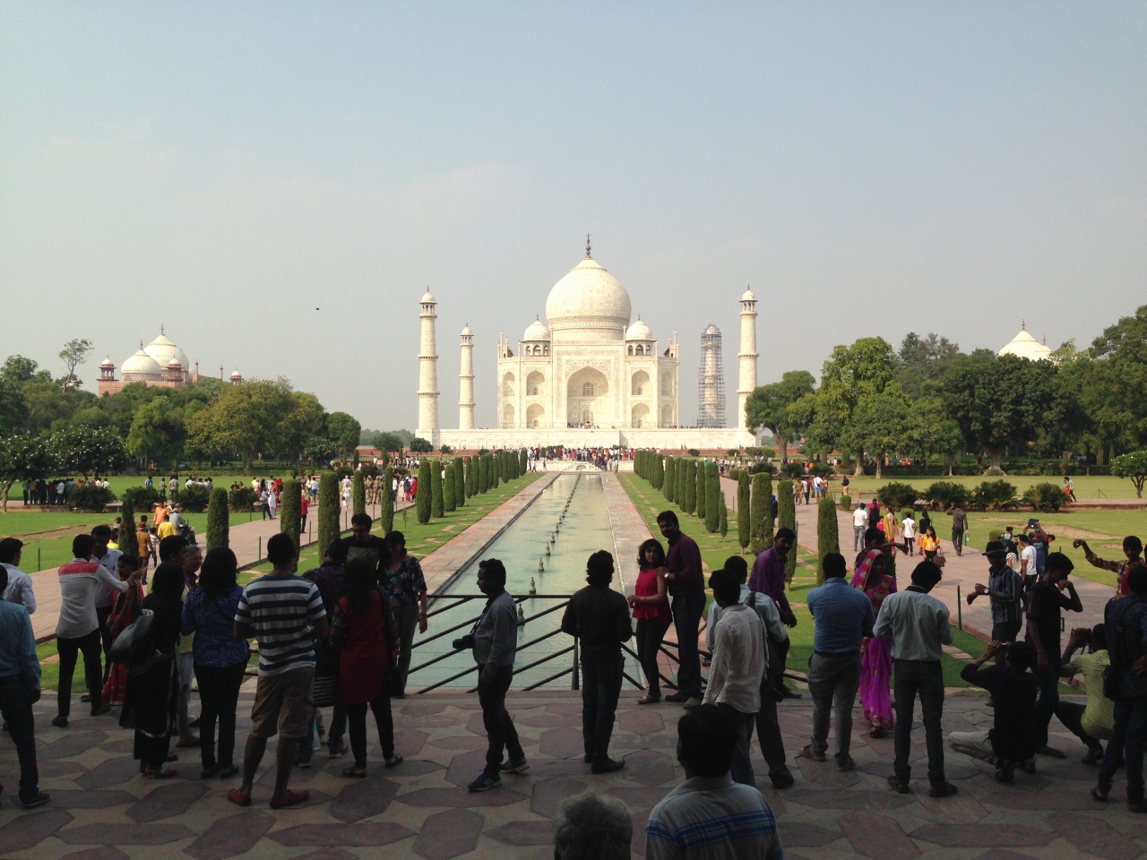 朝の7時頃に行きました。朝日が丁度半分ぐらい照らしておりとても幻想的で綺麗でした。その大きさは想像を超えていました。ただ人がとても多かったです。インド人の多さにびっくりでした。帰りにチケット売り場横でlaziness mango cookieというお土産も買え、大満足なアグラでした。