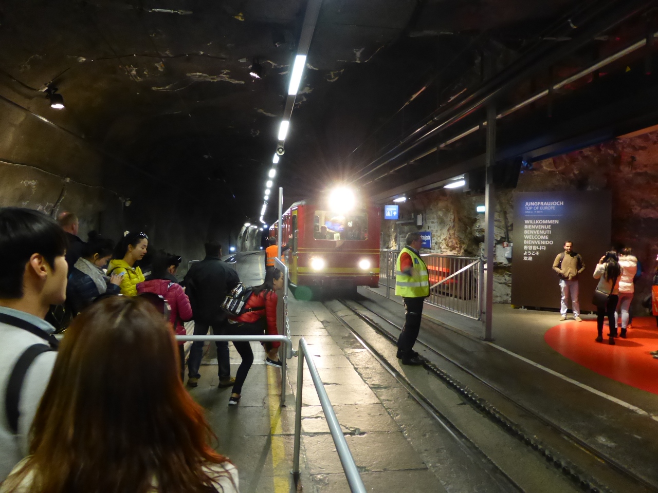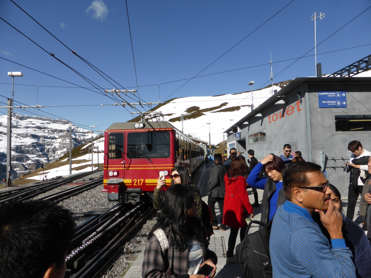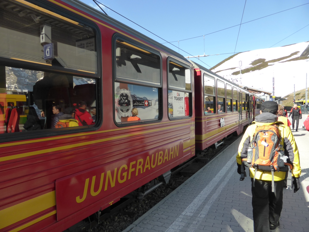 グリンデルワルトからユングフラウヨッホを目指す場合は,ヴェンゲルンアルプ鉄道(WAB)でクライネ・シャイデックまで行き。