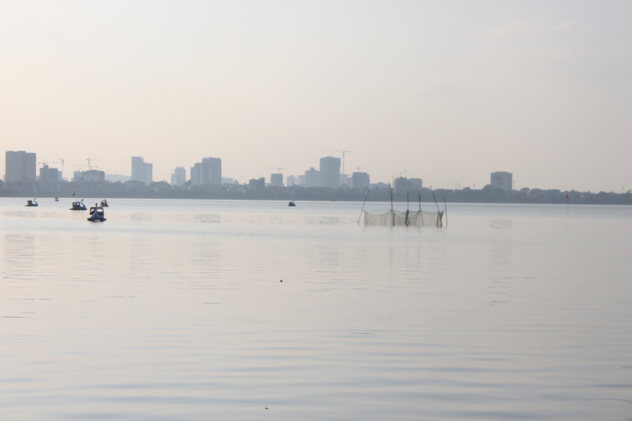 土曜日の午後、鎮国寺に行くときに通りました。旧市街から離れているので、ホアンキエム湖と違って、観光客が少なく、静かでした。湖には魚を捕る仕掛けがあったり、地元の人が釣りをしていました。鎮国寺に行く途中に公衆トイレがありました。