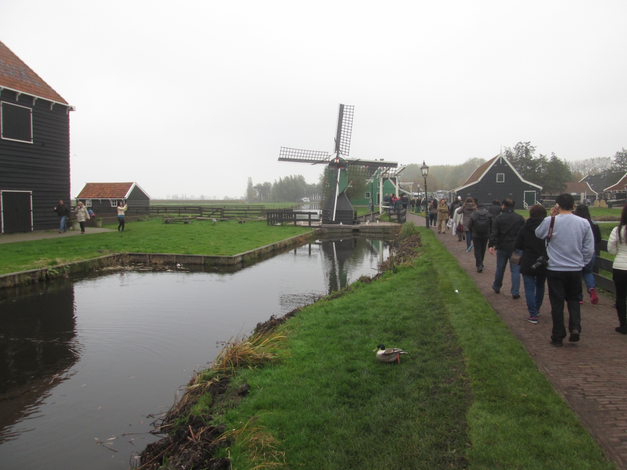 れんがを敷き詰めた小径を行くと、ザーン地方特有のグリーンの壁と白い窓枠の家々が並んでいて、メルヘンの世界に入り込んだ気分になります。村の人々が伝統的に民家や風車をここに移転させて保存することになりました。