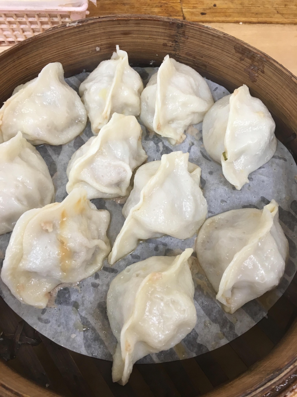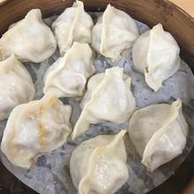 一口大の蒸餃は10個入り。ほくほくの熱い蒸餃を口に運ぶと、具から肉汁があふれ、うまみじゅわっと広がる。素朴でどこか懐かしい餃子。