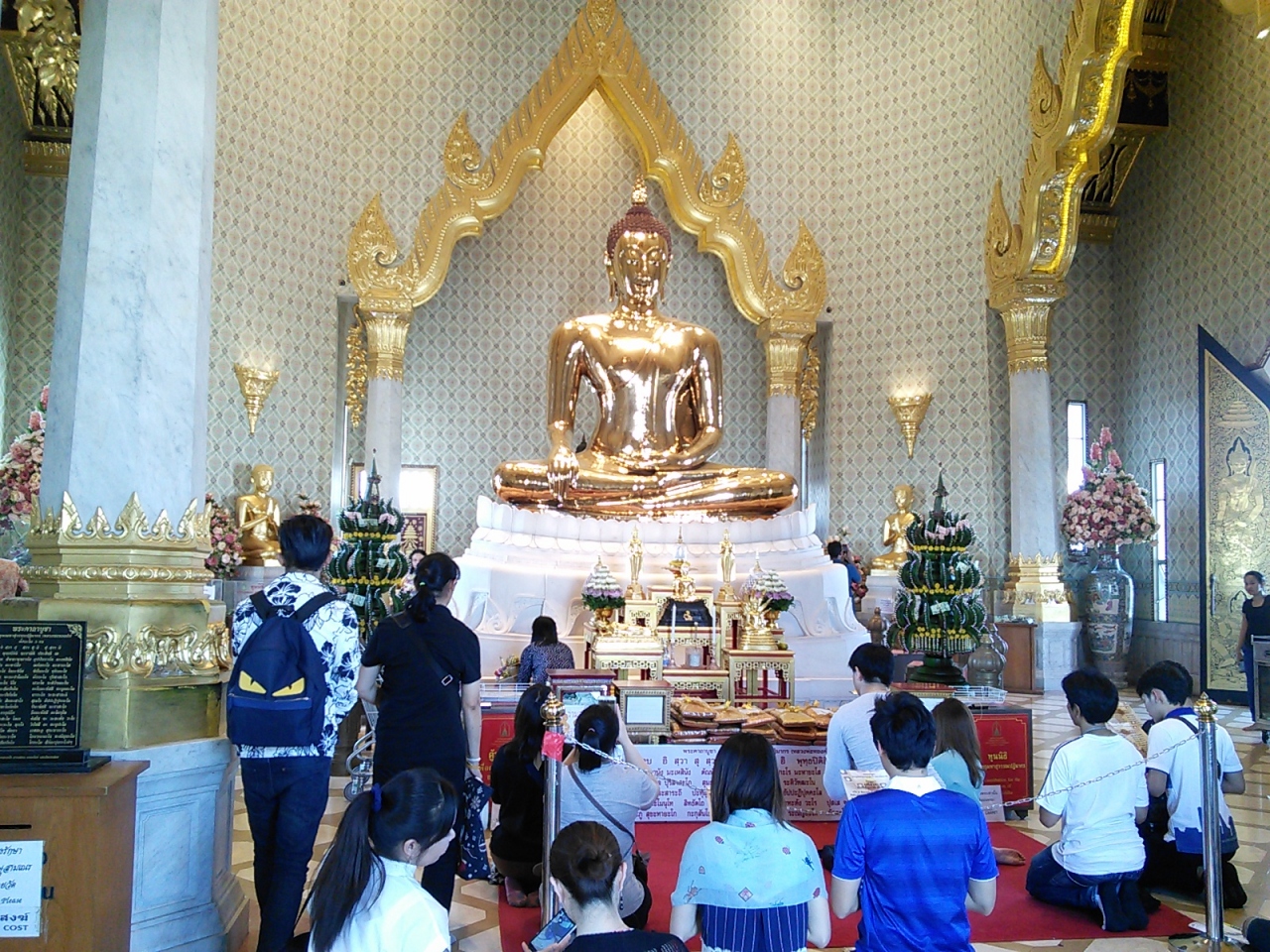 入場料は4Fにあるゴールデンブッダのみなら40B(毎日8:00-17:00)、2,3Fにある展示室(月休み8:00-16:30)に入るならさらに100Bかかります。これらは外国人のみの料金、タイ人は無料です。チケットカウンターはありますがチケットチェックはしていないのでチケットを買わなくても見学できてしまうのが実情です。展示室には係員がいるのでチケット提示が必要です。