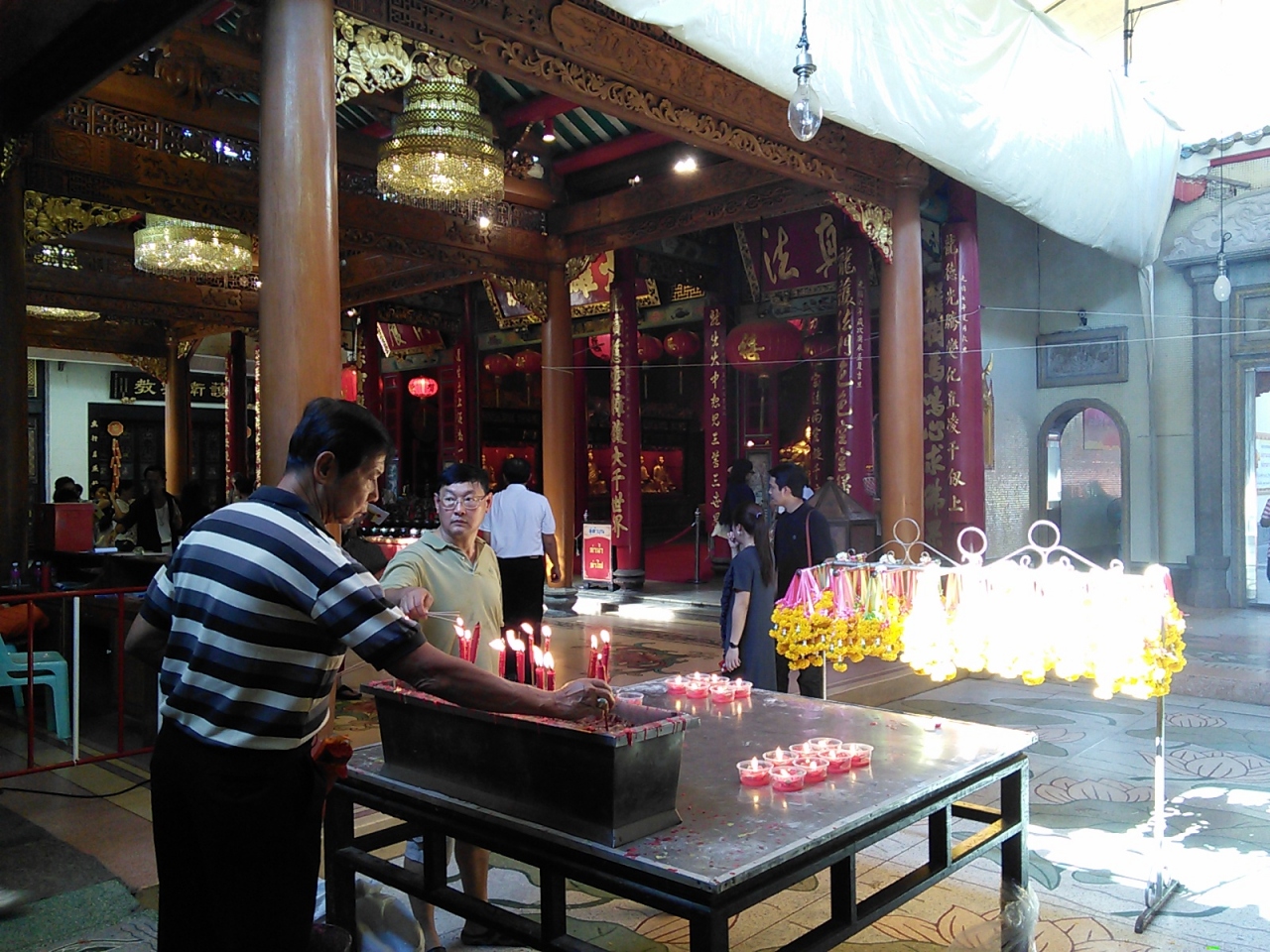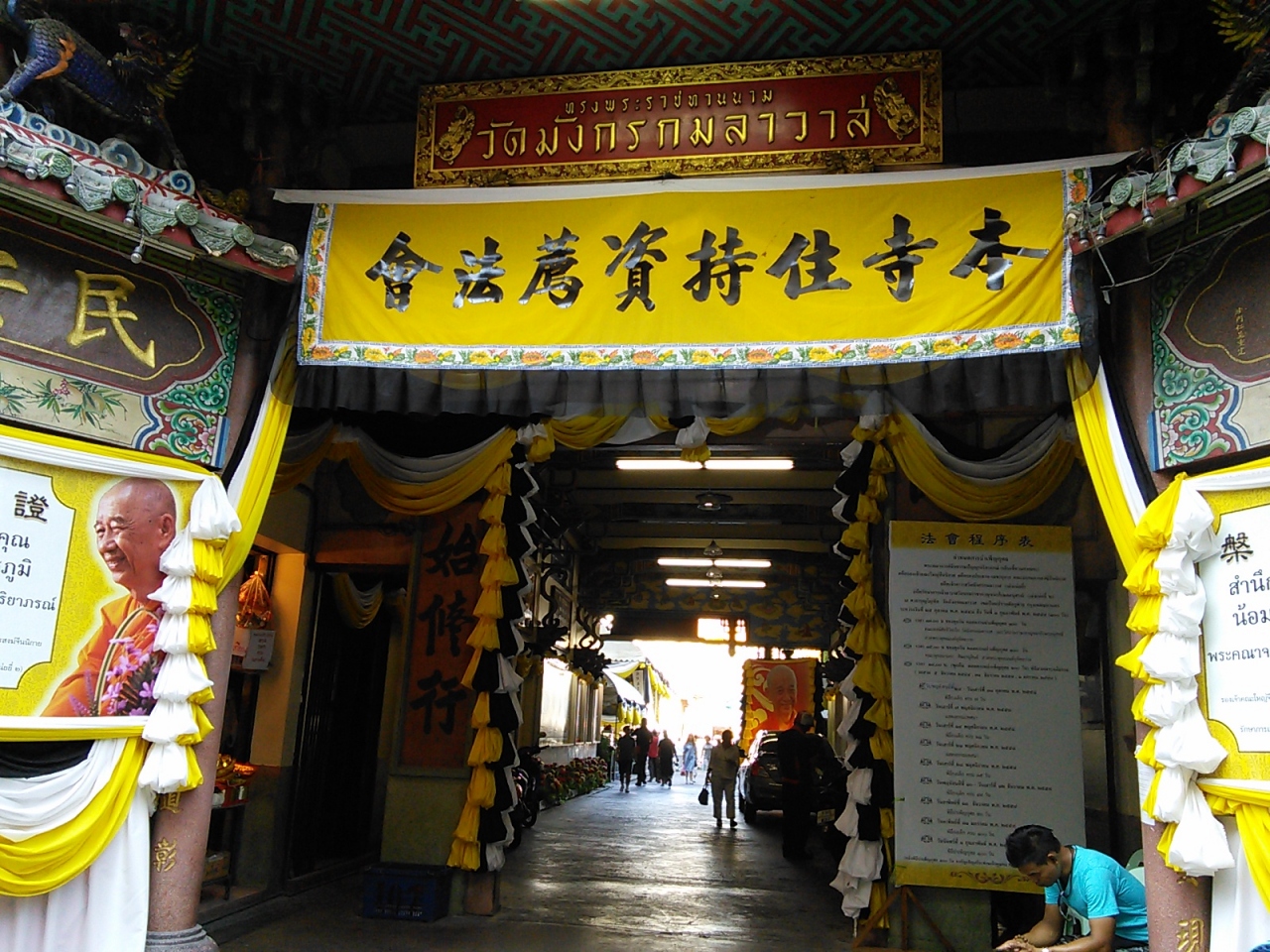 チャイナタウン、ヤワラート通りの北側に平行して走るチャルンクルン通りに入口があります。かなり奥まったところに本堂がありご本尊である金ピカの3体の釈迦如来像が祀られています。いつ行っても多くの人々が参拝に訪れています。それもそのはず1871年に建てられバンコクの中でもっとも古く由緒ある中国仏教寺院のようです。私の訪れた時にはとある住職の葬儀が行われていて多くの僧侶がお経を唱えていました。
