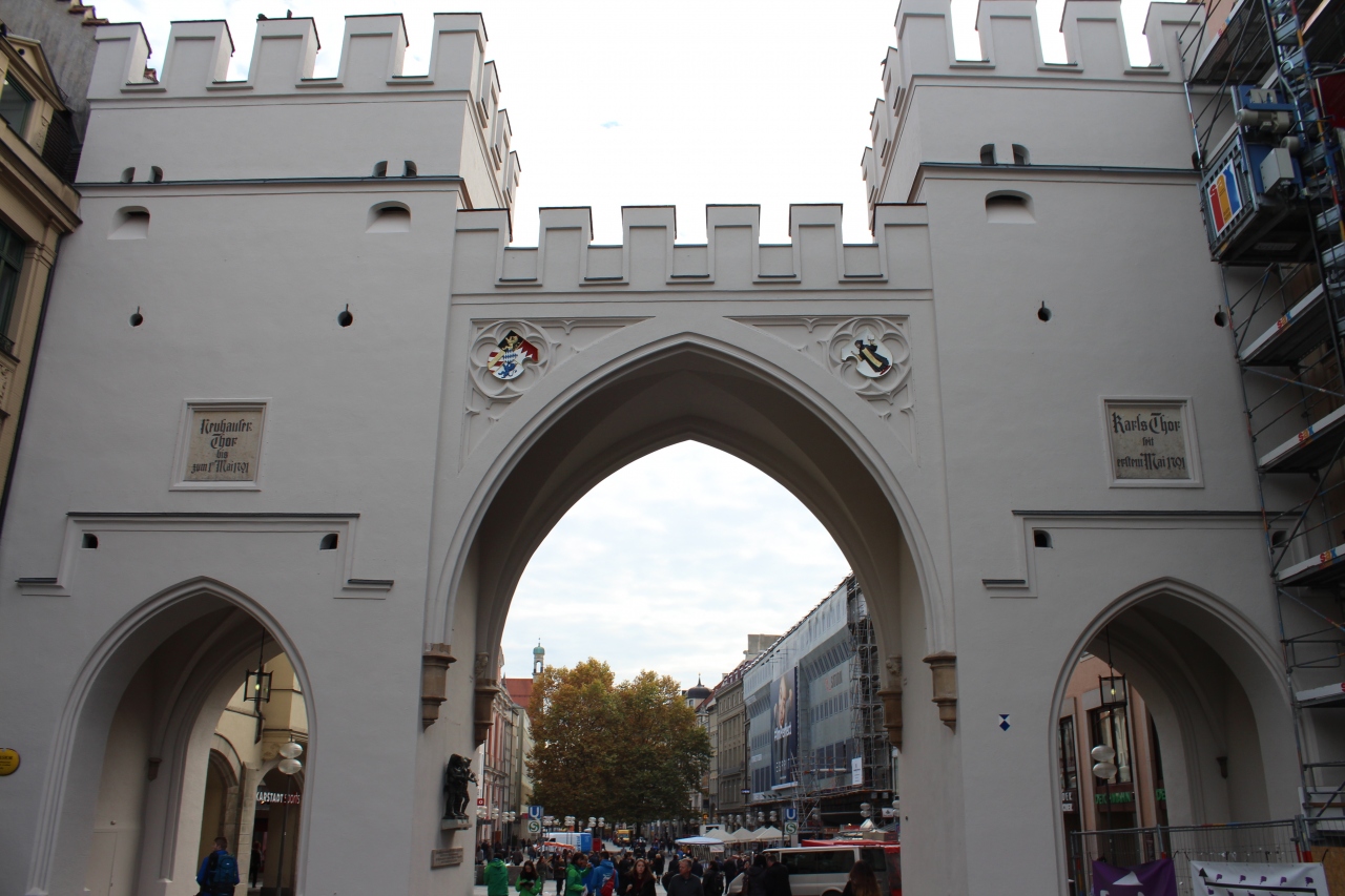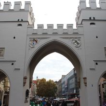 中央駅方面から10分ほどでこちらの門に到着します。そしてその門をくぐると賑やかなショッピングストリートである『ノイスハウザー通り』となります。昼間は買い物客や観光客で非常に賑わい、さらに通りをあるくとマリオン広場に到着。そこには新市庁舎などの観光スポットが周辺に点在しています。 そういった意味では、この門はミュンヘンの入り口といえると思います。