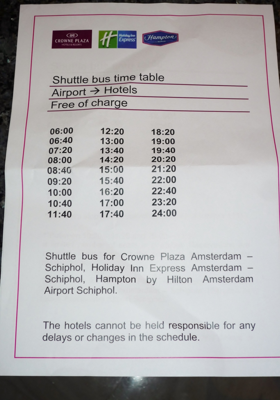 スキポール空港周辺のホテルによっては無料シャトルバスもある