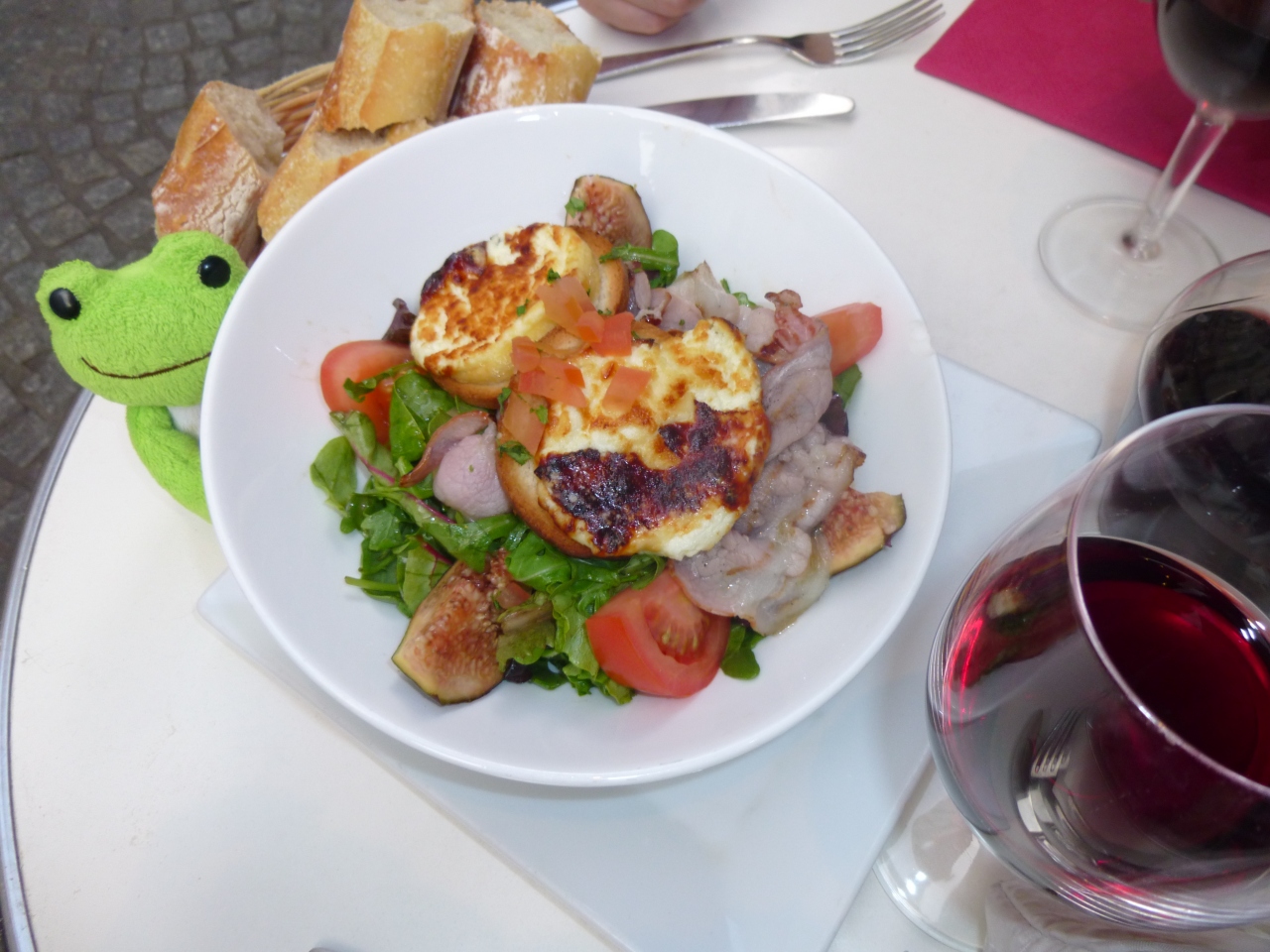 前菜はチーズとベーコンといちじくのサラダ、メインは大好きな鴨のステーキをいただきました。