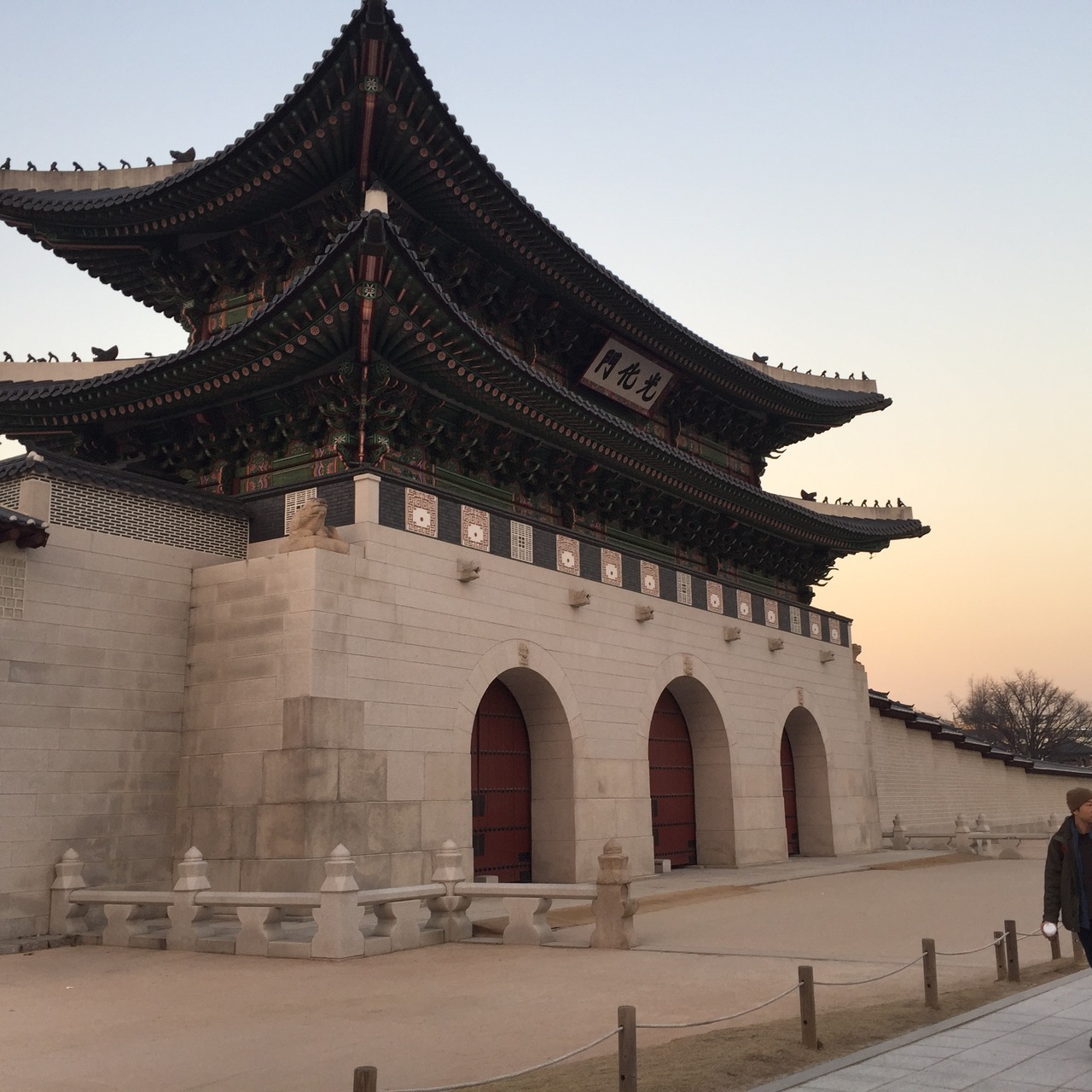 景福宮の入口の門です。地下鉄景福宮駅からは、火曜日が定休日だったので、塀つたいに歩いて、塀の外に出てアクセスしましたので、10分弱かかりました。周囲は高層ビルに囲まれており、その中でこの門が異彩を放っており、中々見ごたえがありました。