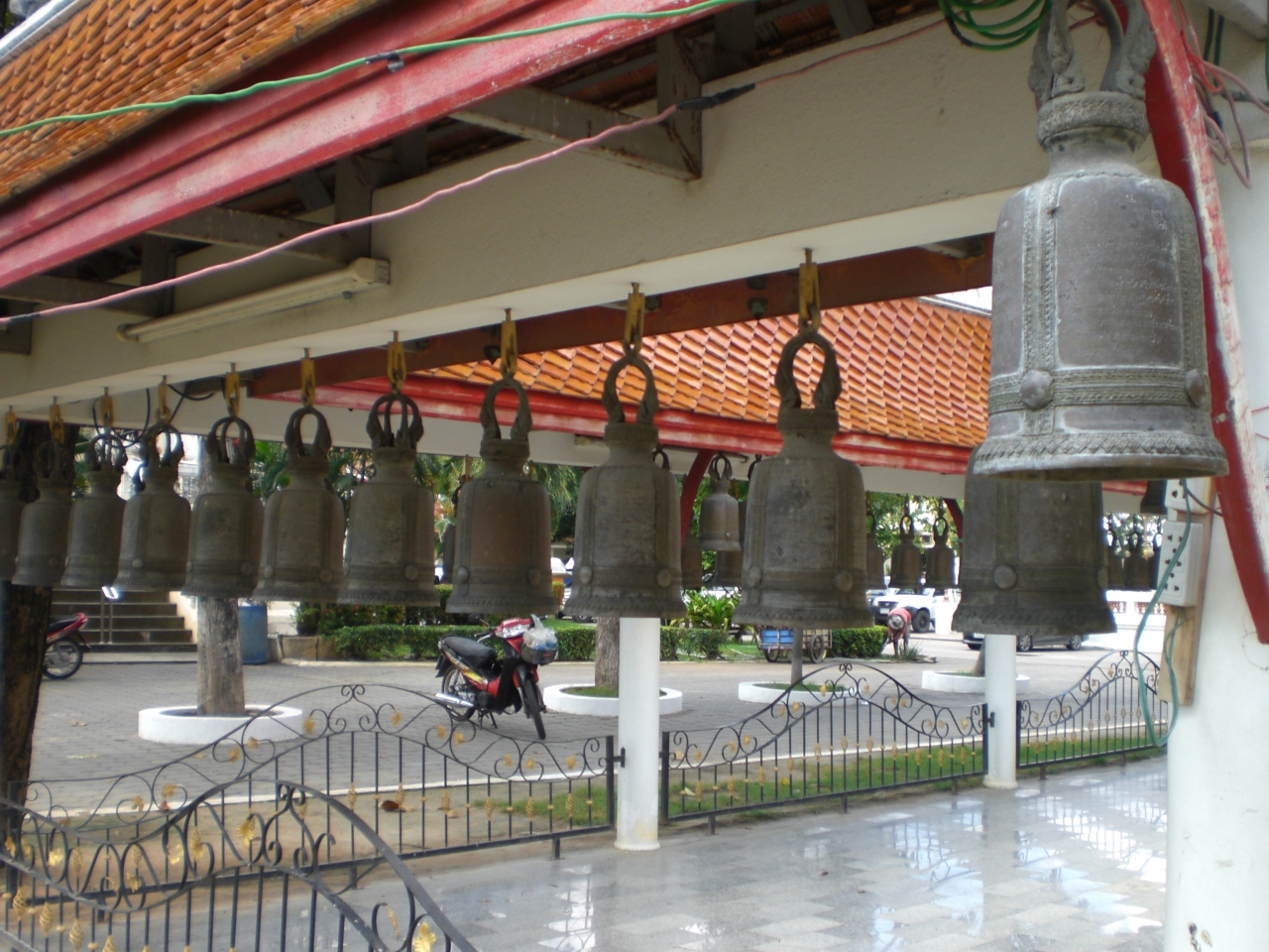 寺院の一角には、多数の梵鐘が掲げられている区画があり、参拝客がそれらの鐘を突いて廻っていました。