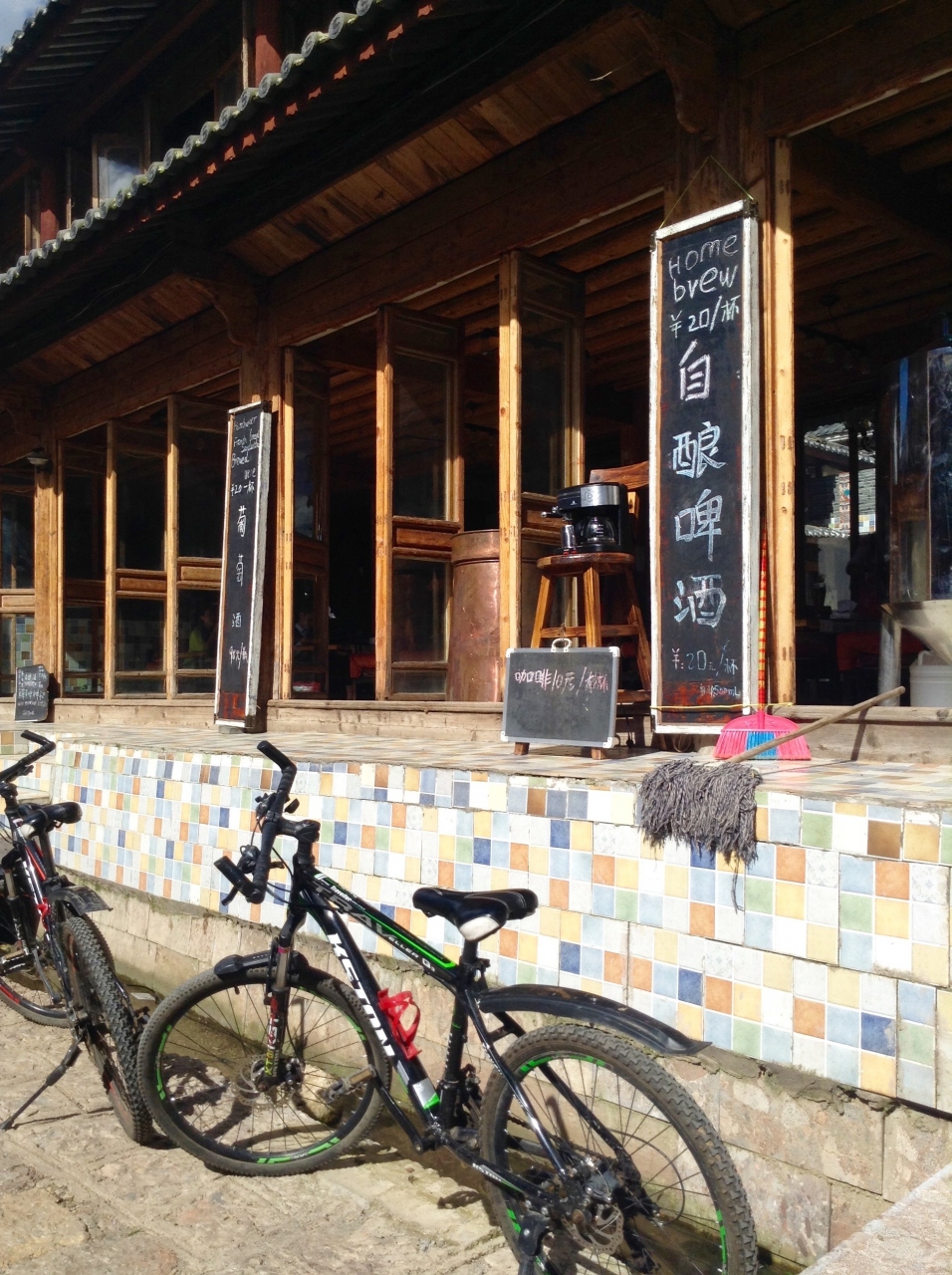 貸し自転車は、束河古鎮のバス乗り場から街に少し入ったところにありました。