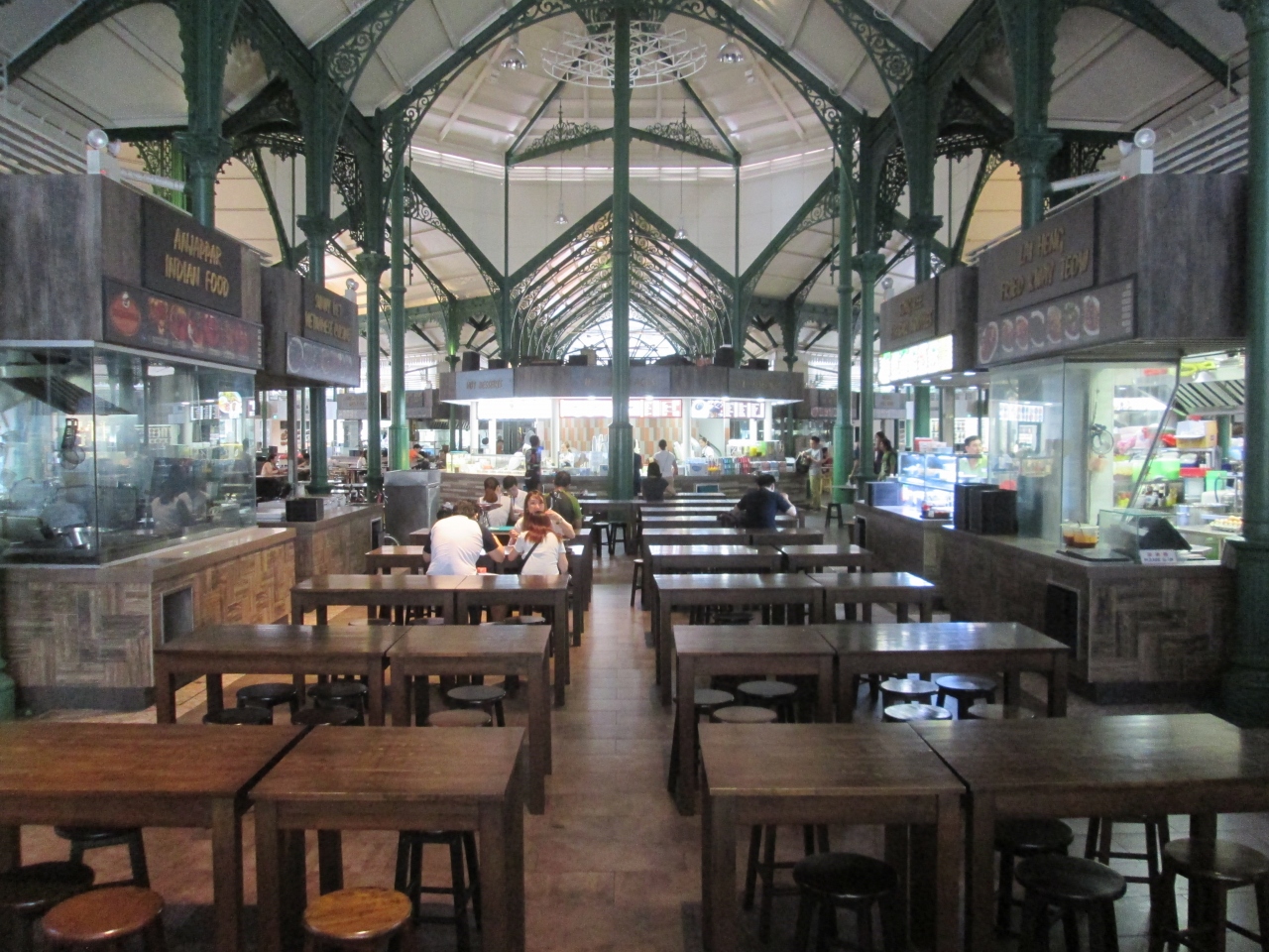 ひときわ目を引く八角形のビクトリア朝の建物内にあります。ここの前身は1838年建設された「テロック・エア市場」で、近くの港で水揚げされた魚を売る市場でした。1970年初めにホーカーを集めたフードセンターとなり、2014年に大規模な改装工事が行われてモダンに変身しました。