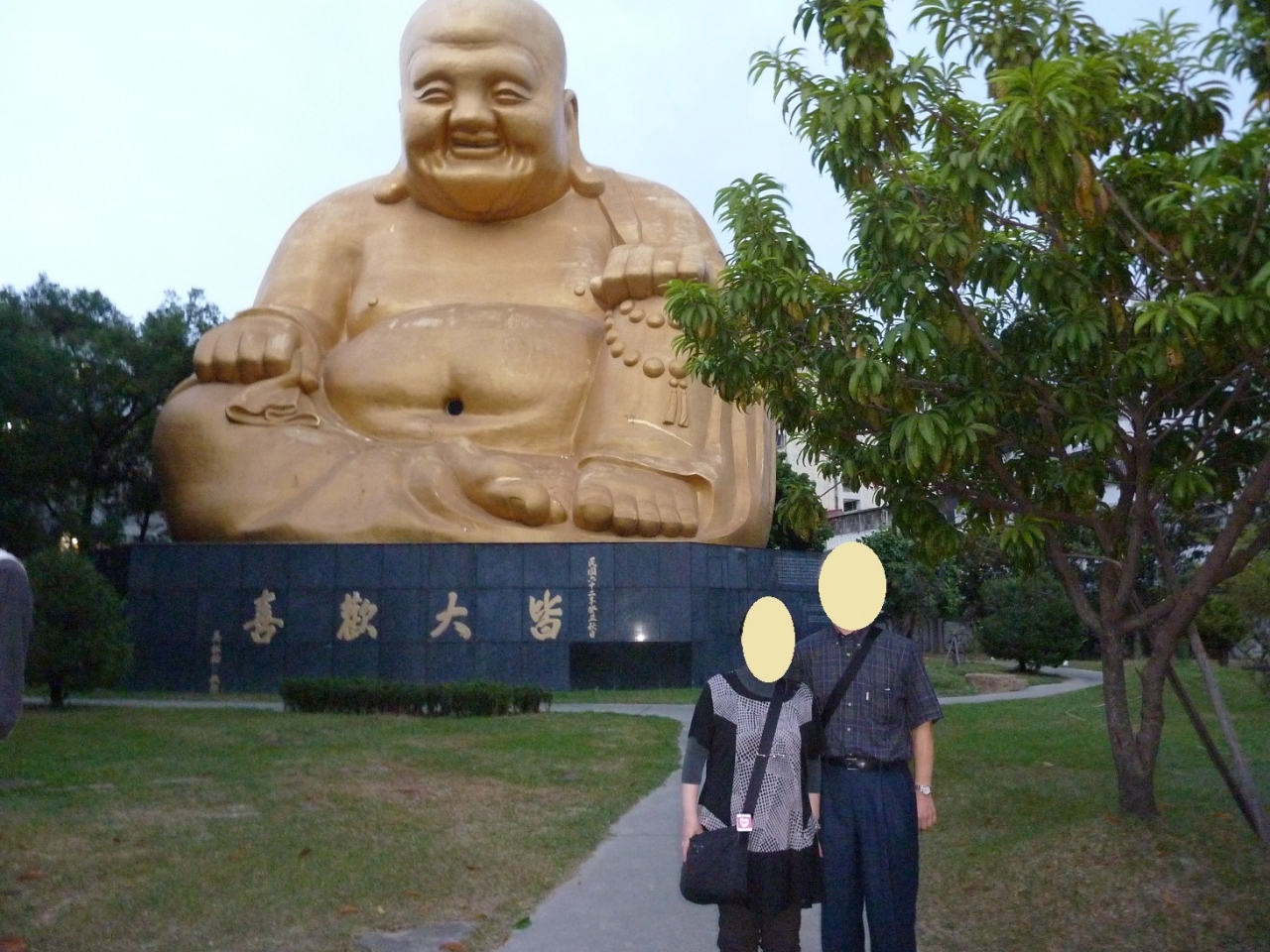 台中で真っ先に訪れる寺院です。金色の大きな布袋様が本堂裏手の露地で鎮座しています。裏手の芝生に囲まれた所にあるため、お寺に入った時には布袋様の姿は見えません。戦前の日本統治時代の建物がそのまま保存され、外構を新しいコンクリートの建屋で囲ってありました。