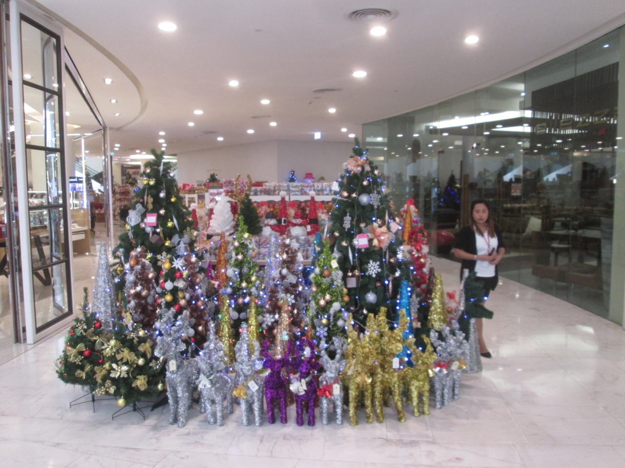 11月に入りバンコク市内の各ショッピングセンターではクリスマスツリーとクリスマスの飾り付けが始まり、店内ではクリスマスソングが流れるようになりました。エンポリアムの店内にきれいなクリスマスの飾り付けが施されていました。