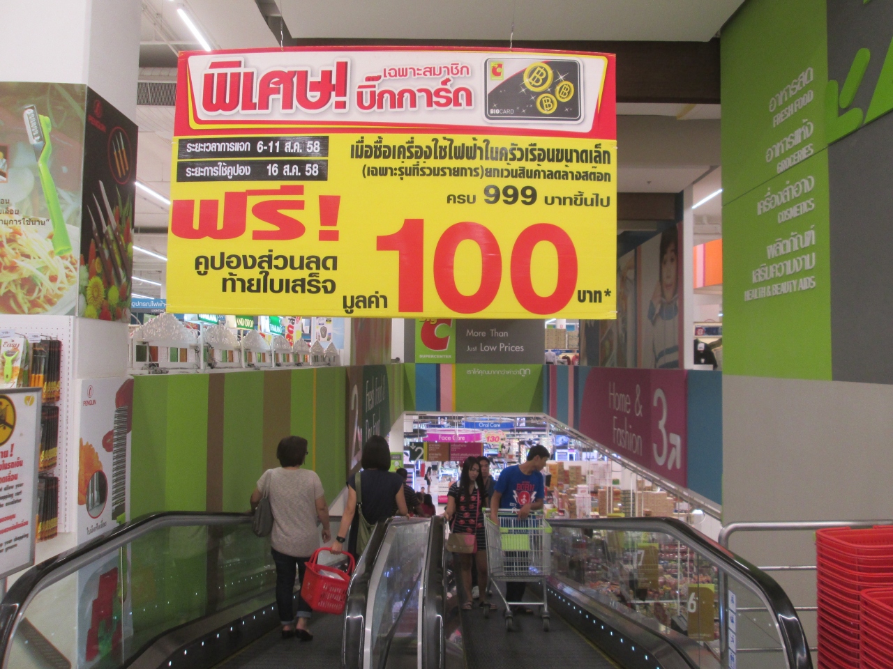 BIGCの2階には売り場面積の広いスーパーマーケットがあります。日本のスーパーマーケットと同様、試食サービスのコーナーがありました。タイカレーは種類が豊富に販売されていますので、購入前に味を確かめることは重要です。
