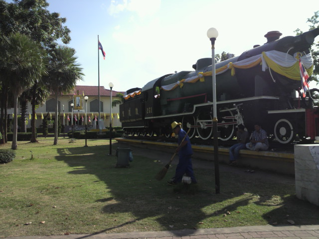ナコンラチャシーマ駅の前には、最初の鉄道の建設を祈念して、機関車を展示・保存しています。