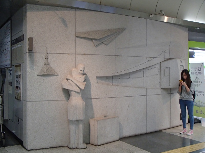 金浦空港の地下にある駅ですけれども地下鉄とAREXの2つでどちらも空港から歩きますね。ただそれは地下にある構造上しょうがないですね。問題は旅行者にもわかりやすくできているかということであって、その点ではホームまでの案内表示がわかりやすくて評価したいところですね。ソウル市内まで近いのもいいですね。