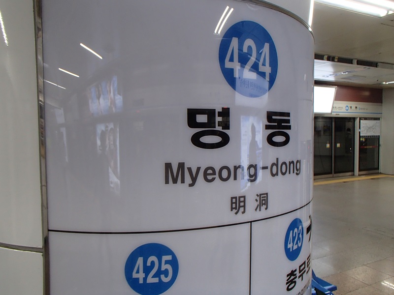地下鉄の明洞駅はたしかにミョンドンにあるんですけども一番にぎわっているところの端っこにあるんですね。ロッテデパートとかの正反対の方になるんで意外と便利な感じはしないですね。