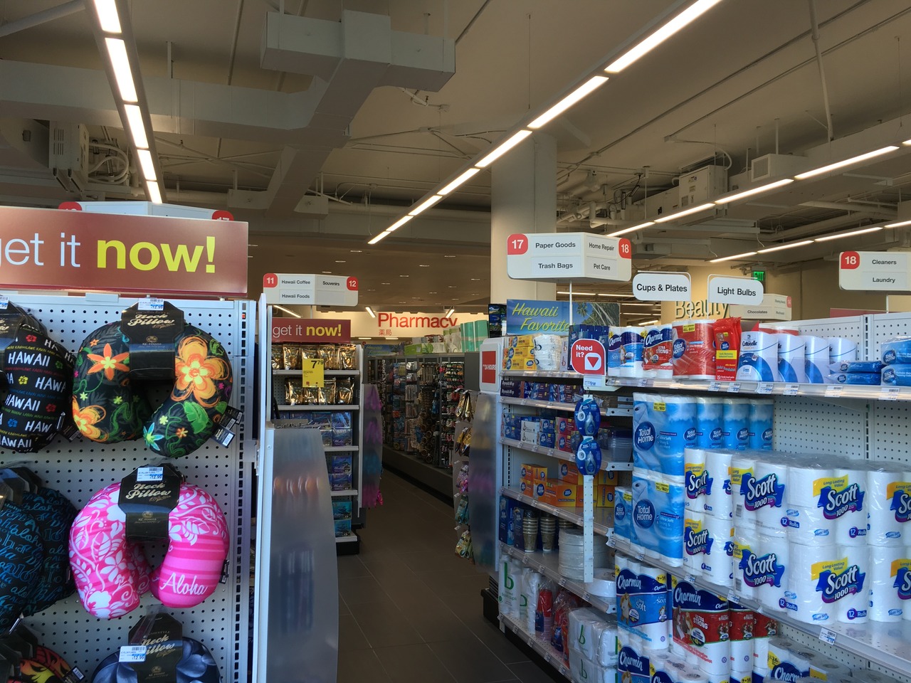 二階がドラッグストアで日用品や化粧品、文具やオモチャなども売っていました。