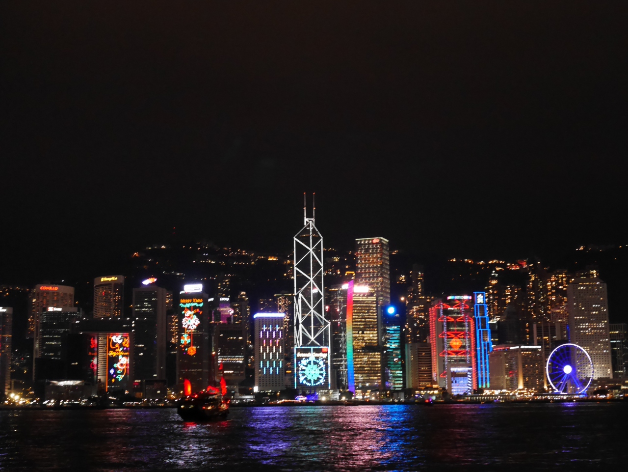 香港旅行の目的の1つとして楽しみにしていました。日中雨が降っていて、天気が悪く雲が多かったせいか、レーザー光線が今1つ見えにくく、迫力に欠けました。