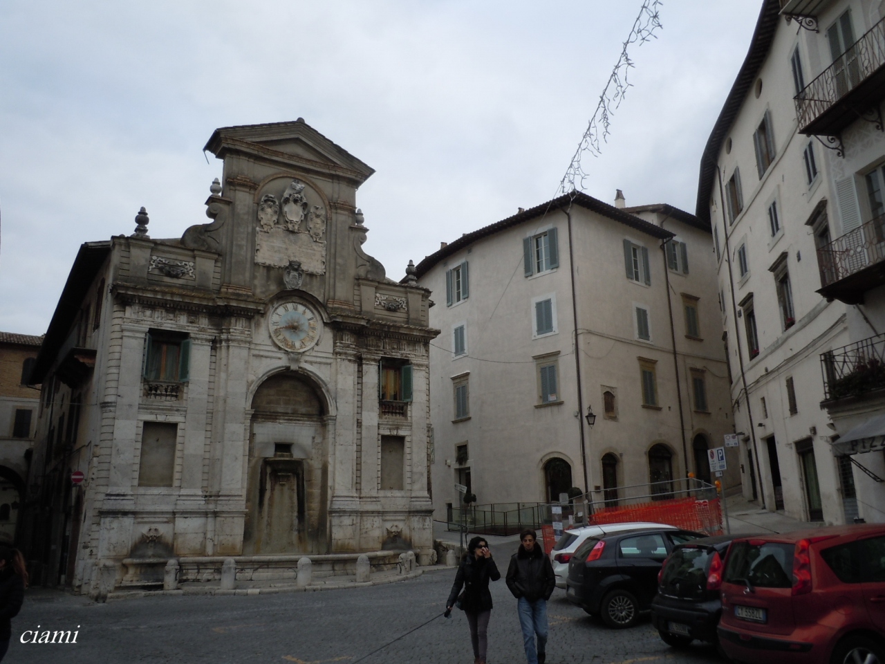 8月に訪れたときは、食料品店や、レストラン、バールに囲まれたにぎやかな広場でしたが、この日はほとんどのお店が閉まっていました。