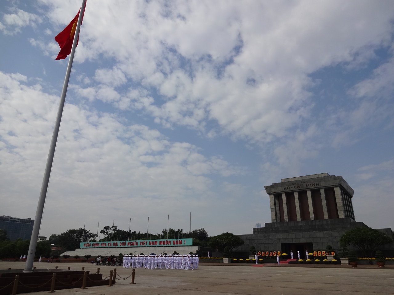 中のご遺体が安置されている部屋は薄暗く、四隅に警備の軍人さんが直立不動で立っていました。空気がピンと張りつめていて、とても厳かな雰囲気です。現地の方は手を合わせて祈っていました。